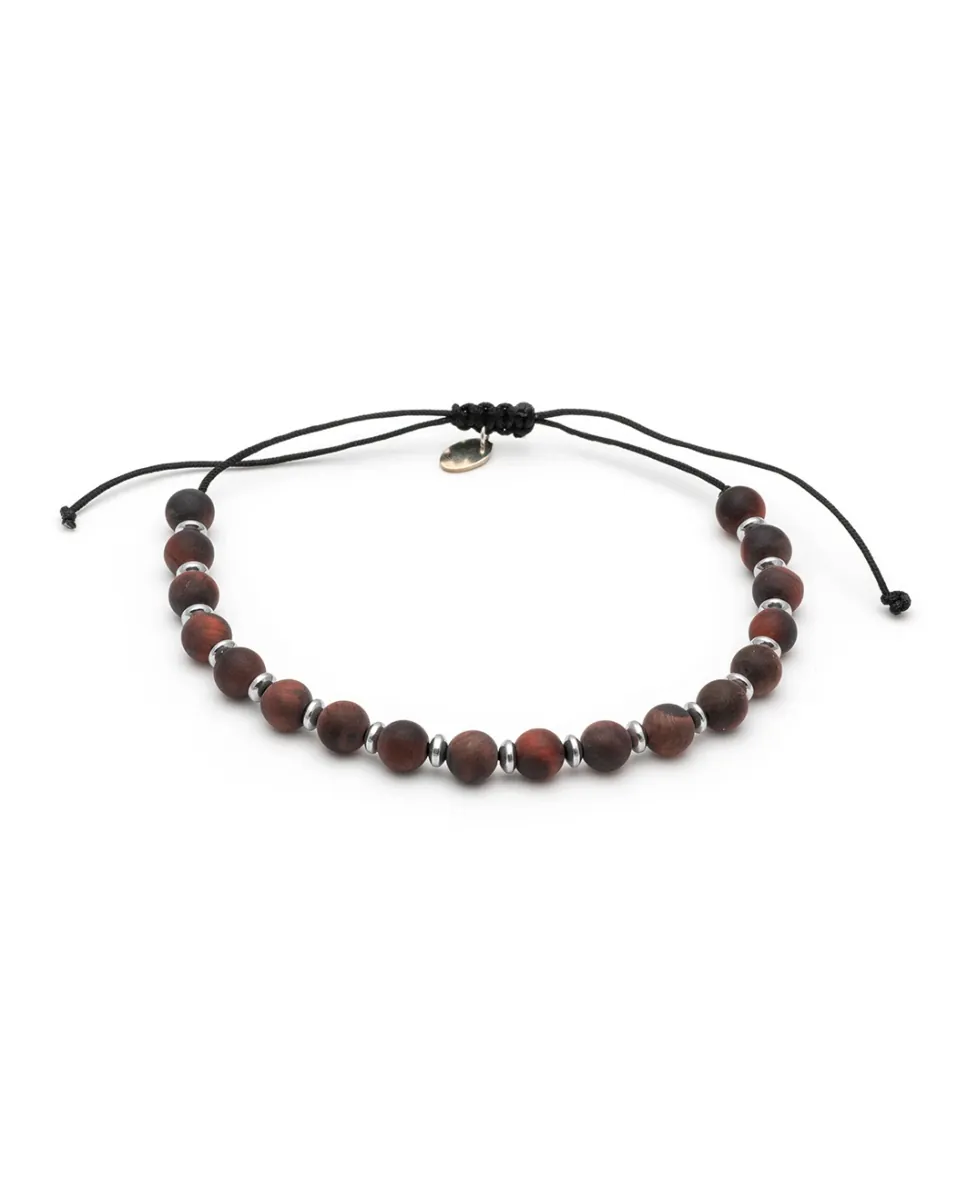 Men's handmade bracelet, made of semi-precious red tiger eye beads, and black adjustable cord.