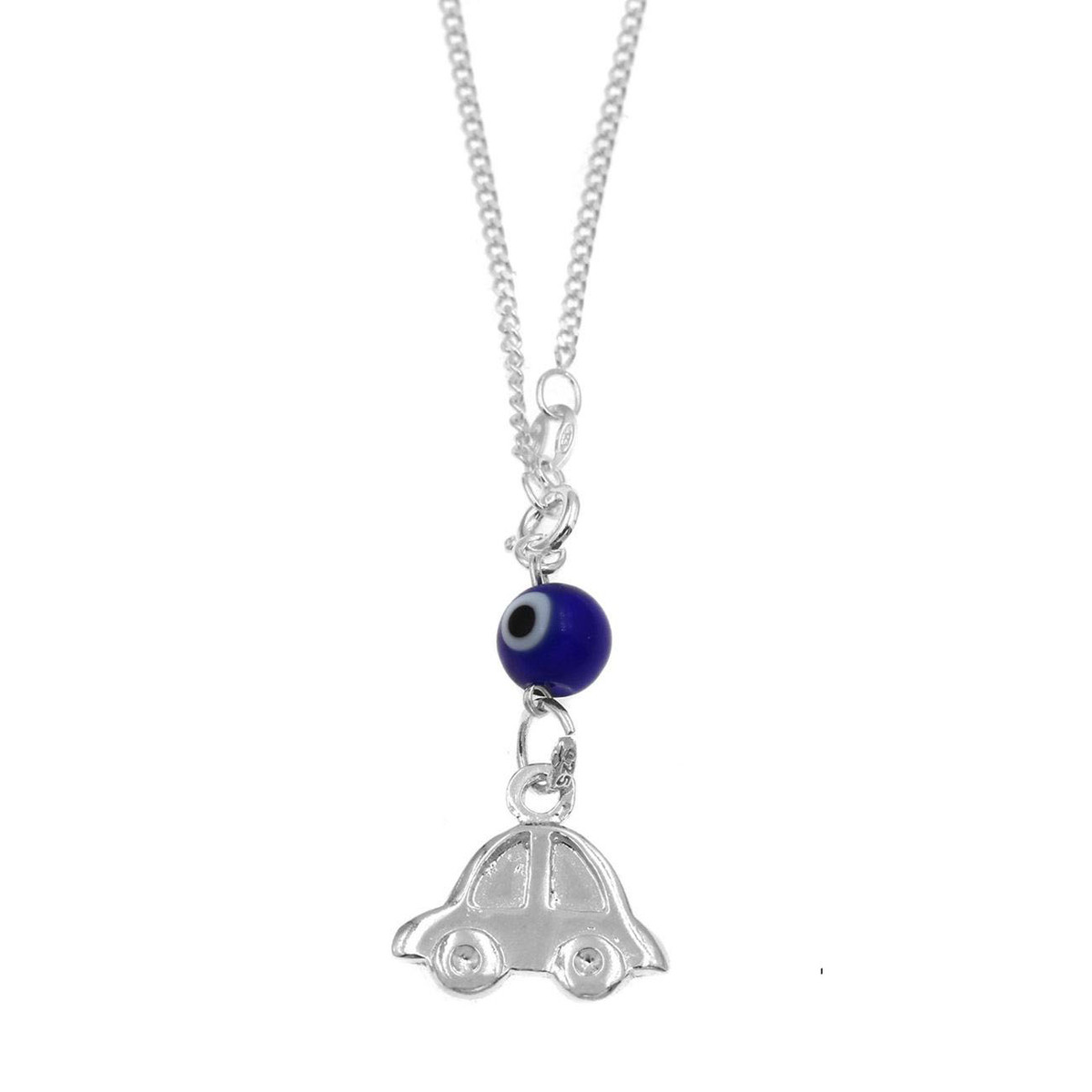 Car amulet made of 925 silver, with a small car and an eye on the chain.