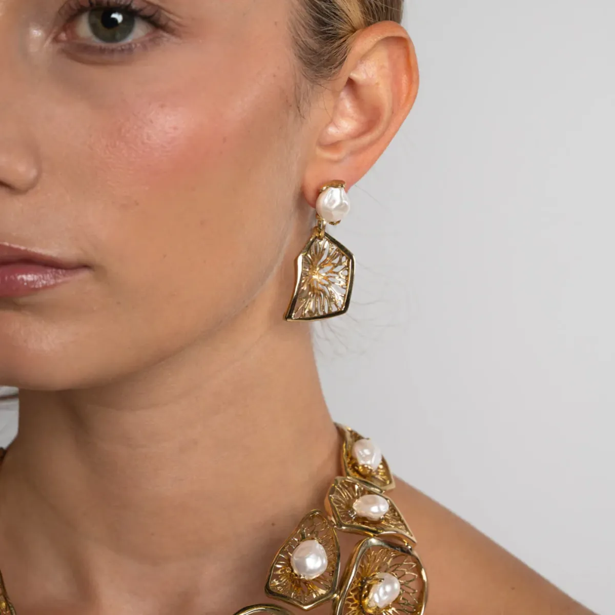 Women's Handmade Opal Long Earrings | GS1887 Kalliope Brass-Pearl Baroque