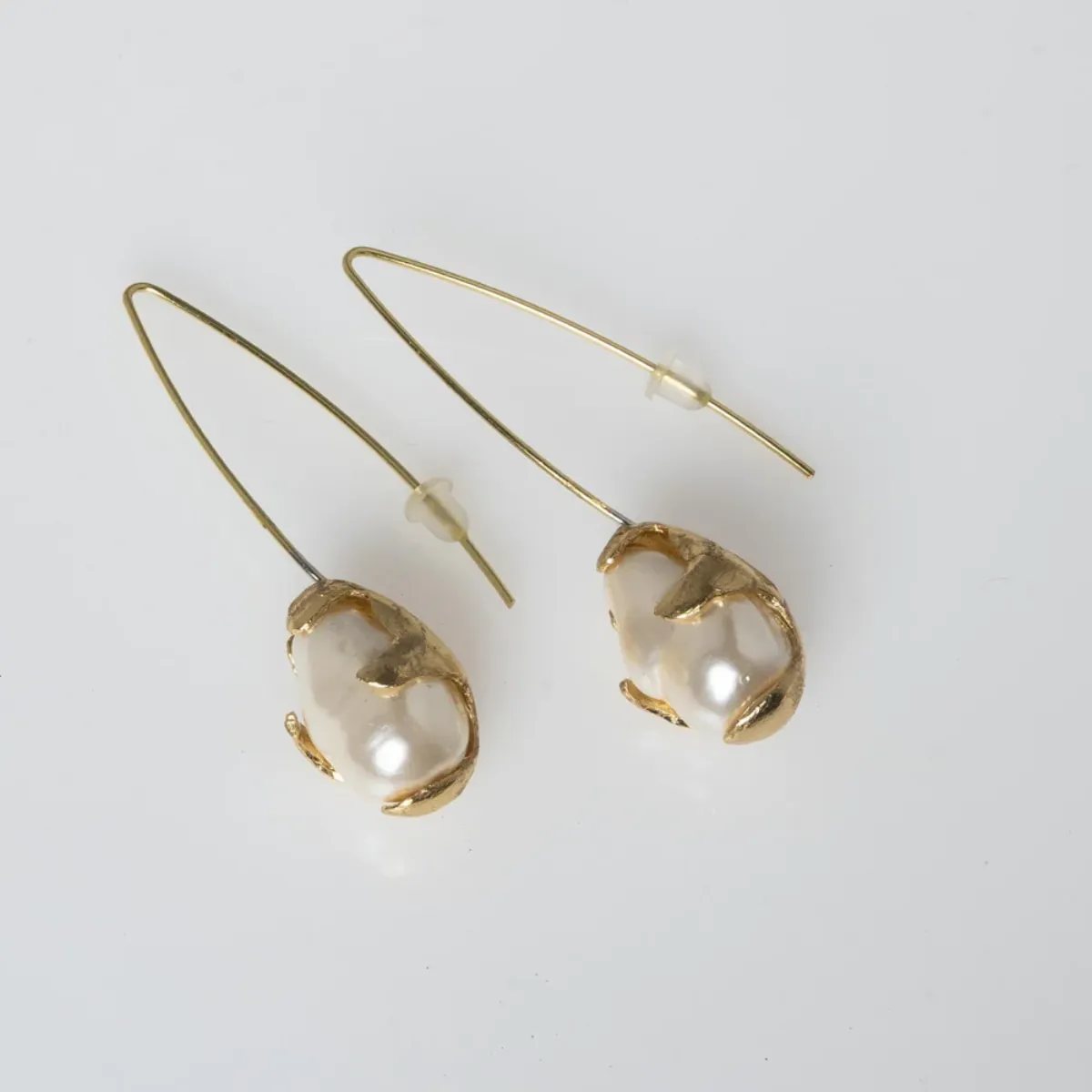 Women's Handmade Earrings Sunny Medium | GS1880b Kalliope Brass White Pearl Baroque