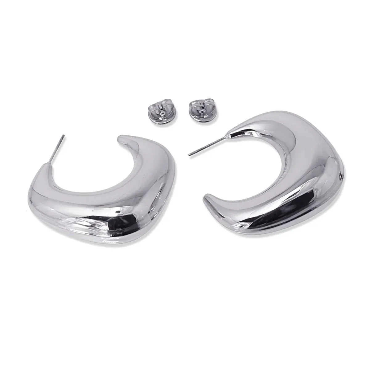 Eliza earrings are elegant and exclusive hoop earrings with an organic and striking design. Being hollow, they are light and comfortable to wear, ideal for any occasion. Made of hypoallergenic steel in silver, their closure ensures a perfect fit. A must-have of the season for a sophisticated and flattering look!