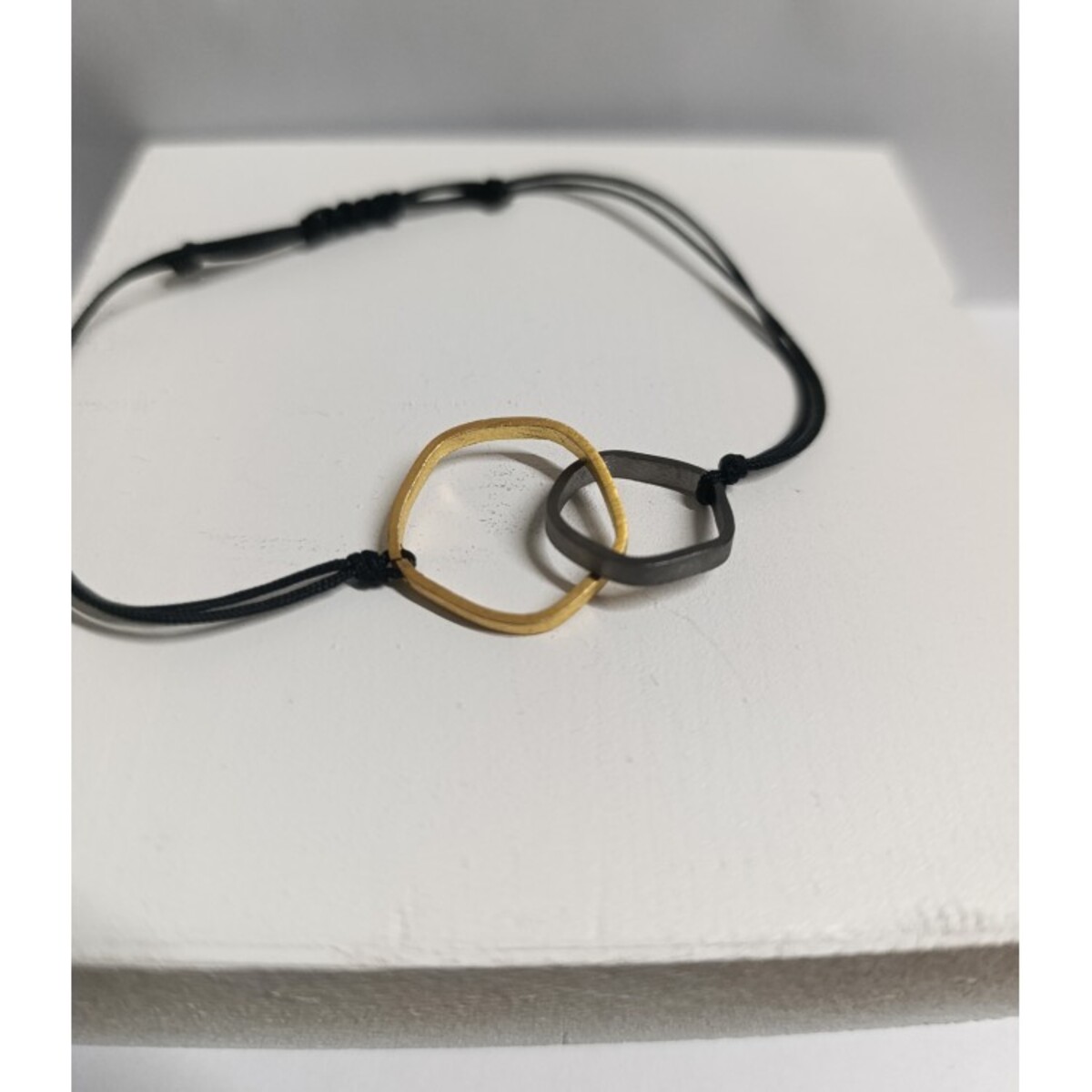 Women's Handmade Twotone Bracelet "Links" LN14 Art7702 Brass-Cord