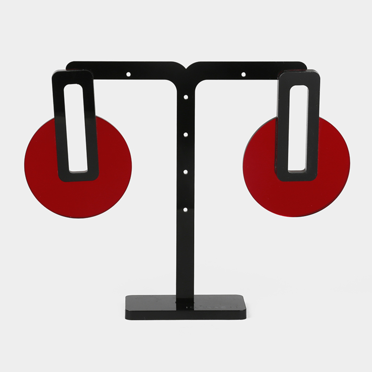 Γυναικεία χειροποίητα σκουλαρίκια κατασκευασμένα από plexiglass, από την συλλογή IOANNA, σε μπορντώ και μαύρο χρώμα .