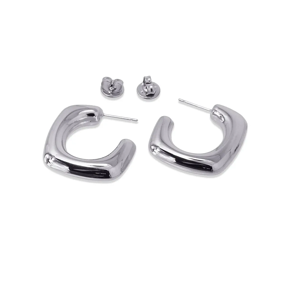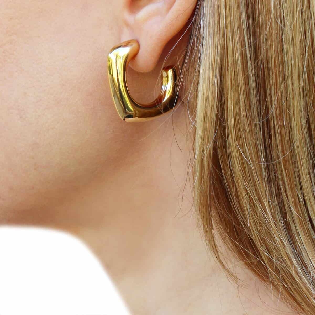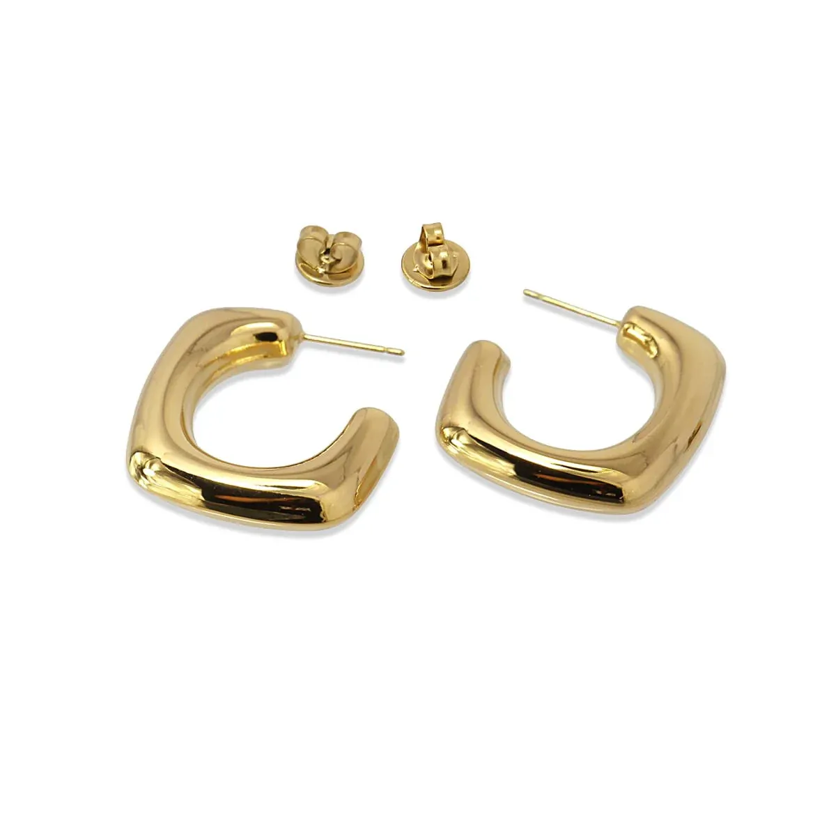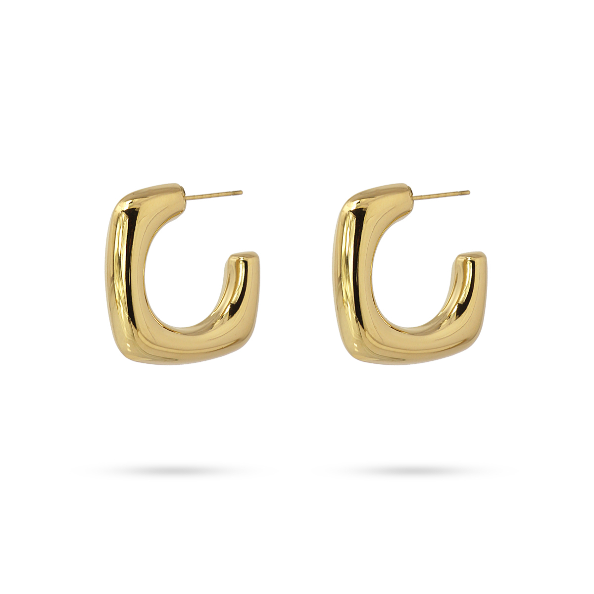 Κρίκοι από χειρουργικό ατσάλι με τετράγωνο σχέδιο. Σκουλαρίκια με όγκο αλλά πολύ ελαφριά, άνετα και θηλυκά. Αγαπούν όλους εξίσου. Διατίθενται σε χρυσό και ασήμι. Έχουν διάμετρο 30 mm και κλείσιμο τύπου πεταλούδας. Δεν προκαλούν αλλεργίες.