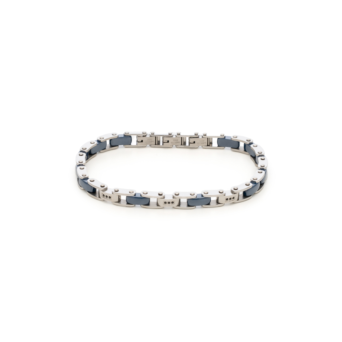 Βραχιόλι από ανοξείδωτο ατσάλι 316L, με γυαλιστερό φινίρισμα που δίνει έναν χαρακτήρα νεανικής πολυτέλειας στον σχεδιασμό του και ημιπολύτιμες πέτρες μπλε αιματίτη.